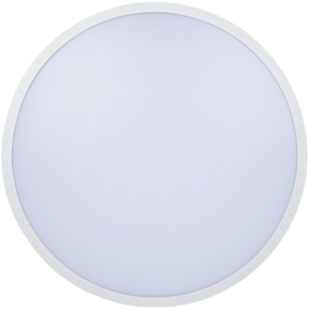 Plafón Hydra de Ø 28,5 cm + Marco en color blanco // Uso interior // Flujo luminoso 1800 lm // Ángulo de apertura 120º // Protección IP44 // Autonomía 30.000 h // Carcasa de PMMA...
