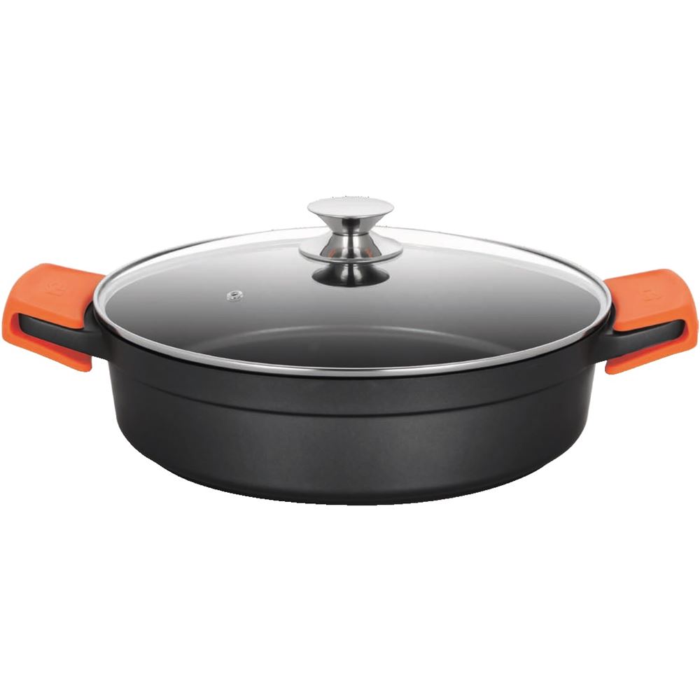 Cazuela baja de aluminio fundido indeformable // Asas de silicosa incluidas // Tapa de cristal templado con vaporizador // Recubrimiento antiadherente libre de PFOA // Apta para lavavajillas // Apto para todos los fuegos // Diámetro 24 cm....