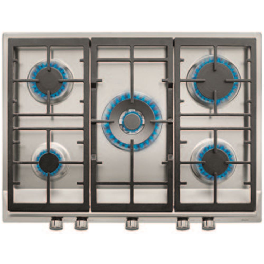 5 fuegos // Autoencendido // Quemadores de alta eficiencia // Placa de cocción a gas (natural) // Quemadores de gas: un quemador auxiliar, 1,00 Kw, dos quemadores semi-rápidos, 1,75 Kw, un quemador rápido, 2,80 Kw y un quemador de doble anillo, 4,00 Kw....