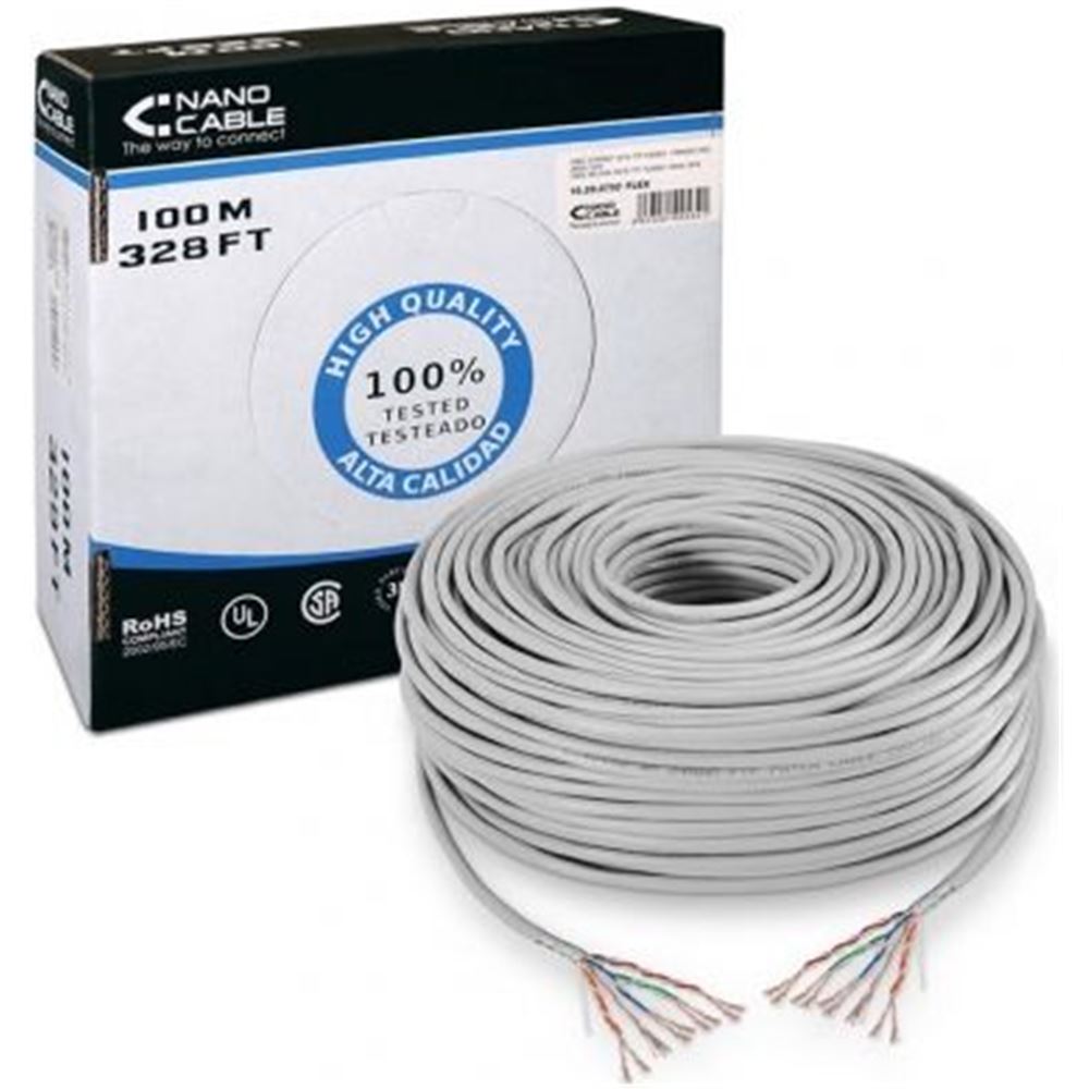 Bobina de Cable RJ45 UTP Nanocable 10.20.0302 Cat.5e/ 100m/ Gris