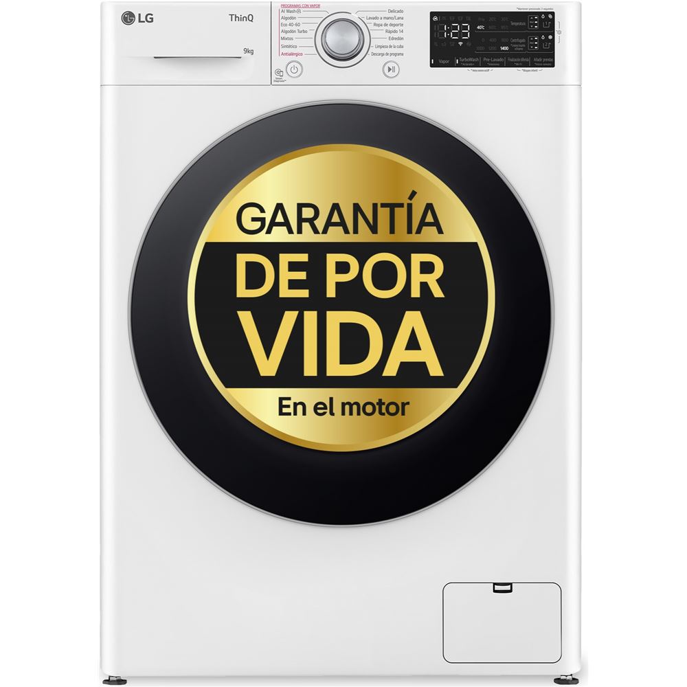 Capacidad de carga (kilos): 9 kg,Nivel de ruido (centrifugado): 71 dB,Revoluciones máximas de centrifugado: 1400 rpm,Función vapor: Sí,Clase eficiencia de energía: A...