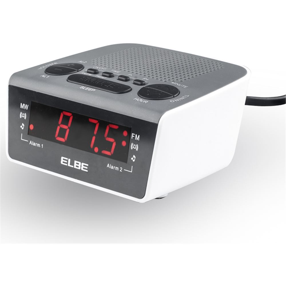 Radio analógica AM/FM.,Alarma con radio o avisador acústico,Sistema de sintonización automática.,Memoria para 20 emisoras (10 emisoras AM y 10 emisoras FM).,Función Snooze,Función sleep,Control de volumen digital,Pantalla LED 0.6,Display rojo.,Alimentación: toma AC,Pilas 2xAAA para mantenimiento (no incl)....