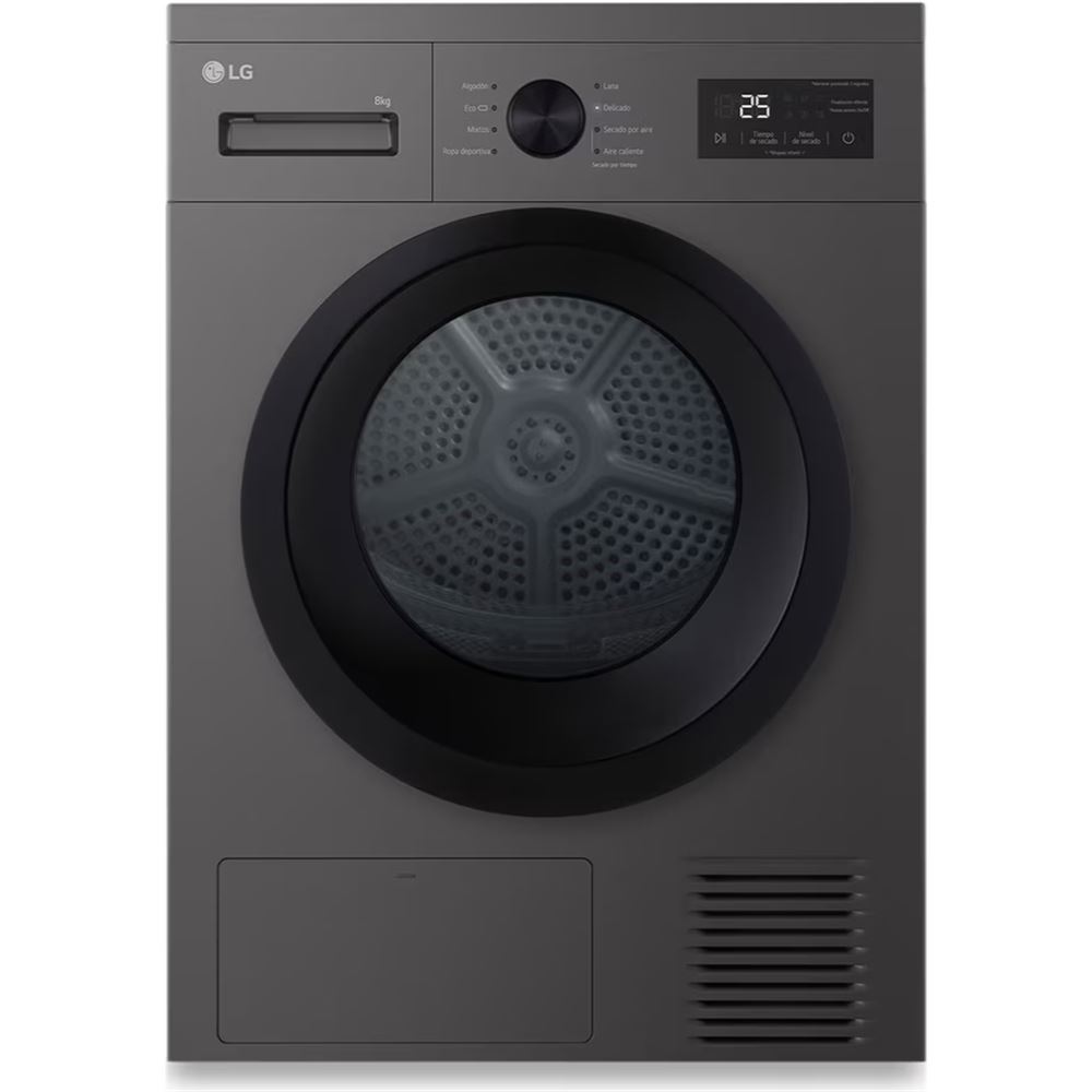 Sistema de secado: Bomba de calor,Color del producto: Negro grafito,Pantalla incorporada: Sí,Capacidad de secado: 8,Nivel de ruido: 65,Cantidad de programas de secado: 8,Programas de secado: Algodón, Delicado/seda, Cuidado fácil, Eco, Higiene/Contra alergias, Mix...